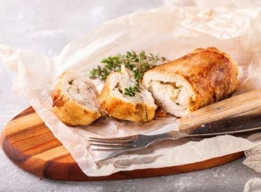 Пилешки ролнички со два вида кашкавал и сусам кои се подготвуваат лесно. Потребни состојки: 300 г пилешки гради 50 г рендан пармезан 50 г рендан кашкавал 1 лажица сусам Малку […]
