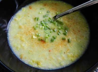 Состојки 1 главица кромид 450 гр. златна мешавина (грашок, пченка, морков) 1 лажичка хималајска сол 7-8 лажици масло малку црн пипер 1 лажица зачин натурал Густо 2 лажици царевно (пченкарно) […]