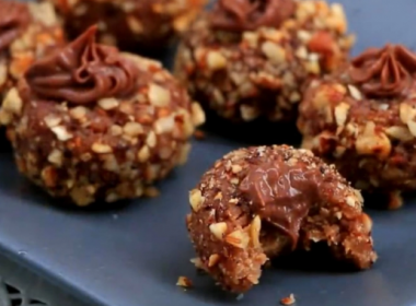 Потребни состојки за кората: 250 гр урми без коски 50 гр бадеми 50 гр ореви 50 гр ф’стаци 50 гр кокосови снегулки Измешајте ги сите состојки за кората во […]