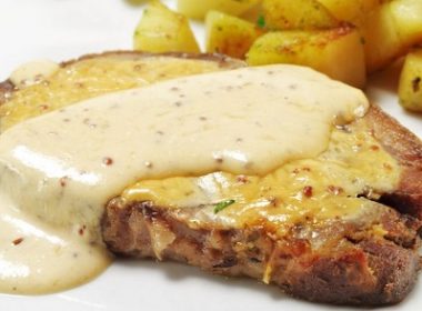 Состојки:600 гр свинско филе50 мл маслосок од еден лимонсол, бел бибер10 гр брашно100 мл бело вино150 мл слатка павлака20 гр путермагдонос1 лажица мешавина од суви зачини Подготовка:Месото исечкајте го на […]