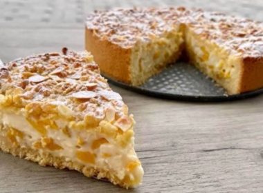 Потребни состојки:2 јајцаванилин шеќер100 грама шеќер50 милилитри сончогледово масло50 грама путер340 грама брашно10 грaма прашок за пецивоЗа крем:200 грама праски (од компот)400 милилитри млеко10 грама ванилин шеќер1 жолчка од јајце3 […]