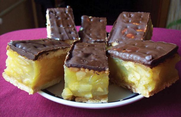 Неодоливо!Состојки: 350 г бисквити 7 дл вода 300 г шеќер 4 кесички пудинг од ванила 1 кг излупени јаболка За глазура: 3 реда чоколадо за готвење 3 лажици масло Подготовка: […]