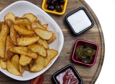 Состојки: 2 кг компири 2 лажици пченкарно брашно 2 лажици пченкарен гриз (палента) 1 лажица сув зачин од билки 1 лажица црвен пипер малку сол куркума маслиново маслоПодготовка:Измијте, излупете и […]