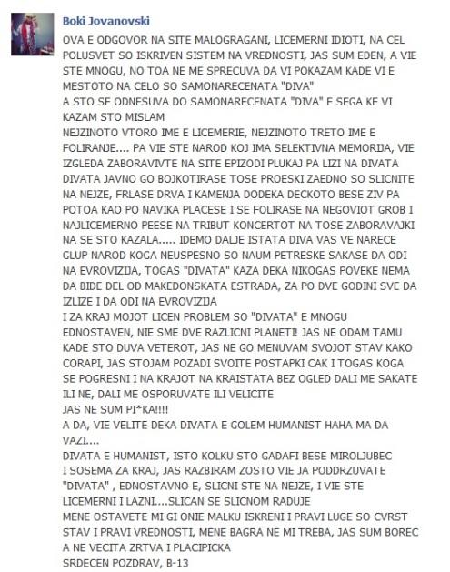 Војната помеѓу Боки 13 и Калиопи и понатаму продолжува. Овој пат исфрустрираниот Боки 13 на својот официјален Фејсбук профил напиша доста долг статус на кој ги изнесе свои факти и […]