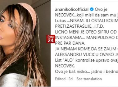 Српската пејачка Ана Николиќ утрово објави фотографија од Саша Мирковиќ, кој е и менаџер на Аца Лукас, заедно со еден куп навреди. Изгледа дека нивната деловна соработка и пријателство завршила […]