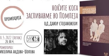 Вечерва во кафе-книжарницата „Буква“ во 20 часот ќе се одржи промоцијата на романот„Ноќите кога заспивавме во Помпеја“ од Давор Стојановски, во издание на ИЛИ-ИЛИ.Промоторка на книгата ќе биде писателката Николина […]