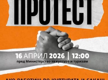 Денес протест на Синдикатот пред Министерството за кулутра: „Во опасност се сите колективни договори!“