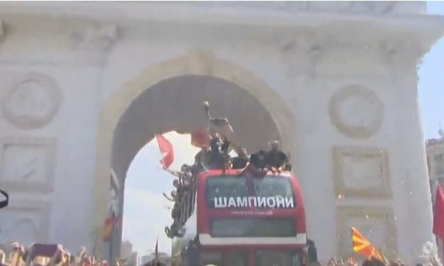 Конвојот со ракометарите на Вардар пристигна на плоштадот Македонија