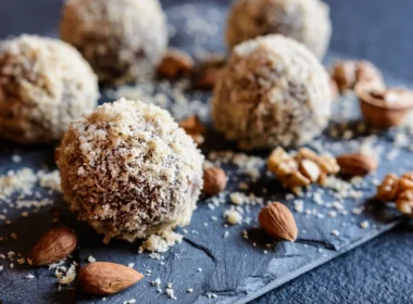 Потребно е: 250 гр посен маргарин250 гр шеќер во прав250 гр мелен бисквит100 гр мелени ореви2 лажици рум Подготовка: Маргаринот се мати со шеќерот во прав, па се додаваат бисквитите, […]