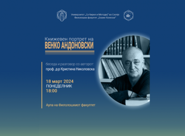 Книжевeн портрет на Венко Андоновски ќе се одржи утре во 18 часот, во Аулата на Филолошкиот факултет „Блаже Конески“. Беседа и разговор со авторот ќе одржи проф. д-р Кристина Николовска. Настанот […]