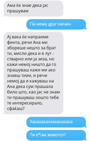 СМС НА ДЕНОТ: Ми збореше Ана нешто за твојот брат…