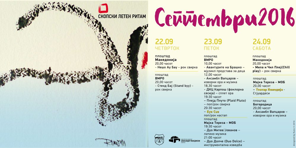 Во рамките на проектот „Скопски летен ритам“ неделава ќе се реализара богатa културно-музичка содржина со голем број учесници и настани на централните Градски Плоштади, којашто почна вчеравечер /22 септември, четврток/ на Плоштад Македонија со настапатот на „Нешо ау-бау”, млад кавер бенд од Скопје.На Плоштадот ВМРО, свој настап имаа „Стенд бај“ познати на македонската публика.