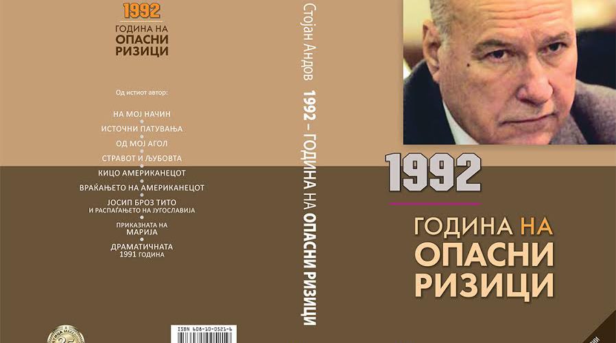 Во свечената сала на Кинотеката на Македонија, на 30 ноември (среда) во 18 часот ќе биде промовирана книгата „1992 – година на опасни ризици“ од Стојан Андов, прв претседател на Собранието на Република Македонија по нејзиното осамостојување.За најновото дело на познатиот политичар, публицист и писател ќе говорат истакнатите македонски писатели Јордан Плевнеш и Паскал Гилевски, а извадоци од делото ќе читаат артистите Мето Јовановски и Роберт Велјановски.