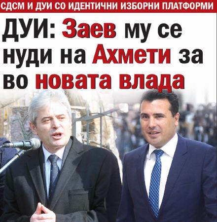 ДУИ: Заев му се нуди на Ахмети за во новата влада