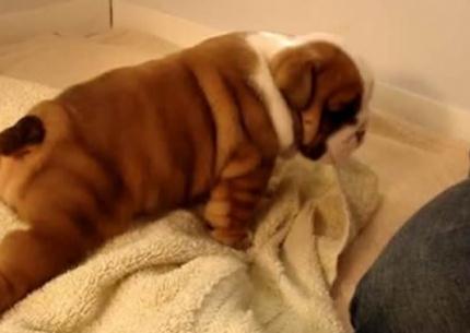 ВИДЕО: Преслатко буцкасто кутре се обидува да прооди