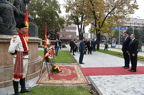 Град Скопје: Положени цвеќиња пред споменикот на основачите на ВМРО