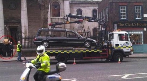 Неверојатно:Додека работниците го носат ковчегот погребалното возило го зема пајак служба